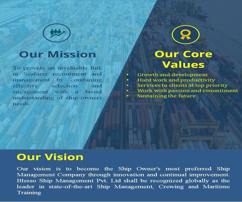 Blesso Ship Management is a company approved by Directorate General of Shipping. Government of India, holding RPSL No MUM-162212. PALM MARINE SERVICES PVT LTD. Is a Sister Concern of Blesso ship Management Pvt. Ltd.